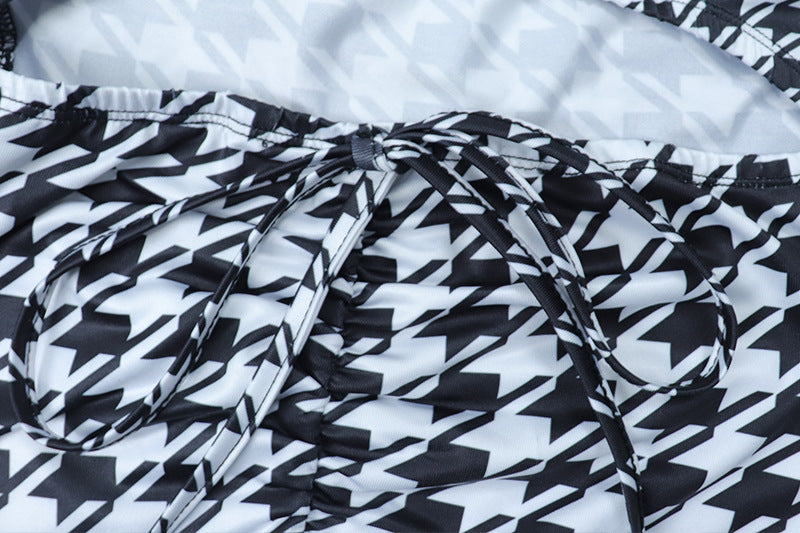 Backless Lace-Up Halter Cutout Smocked Pack Hip Dress
