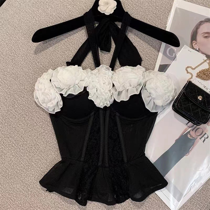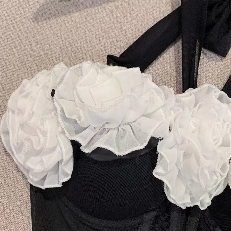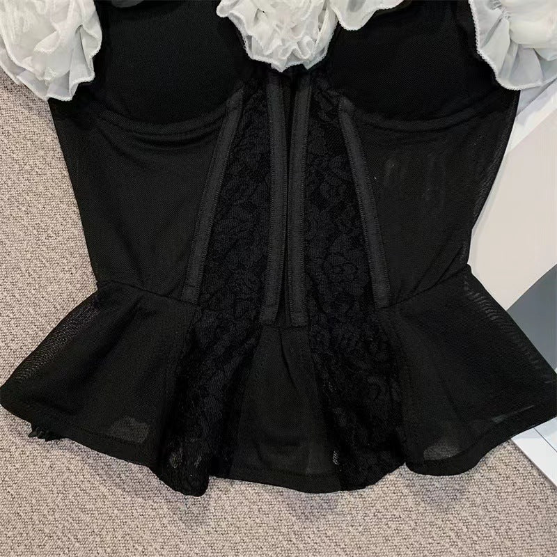 Bandeau One-shoulder Jacquard Fishbone Waist Ruffled Slim-fit Short Top