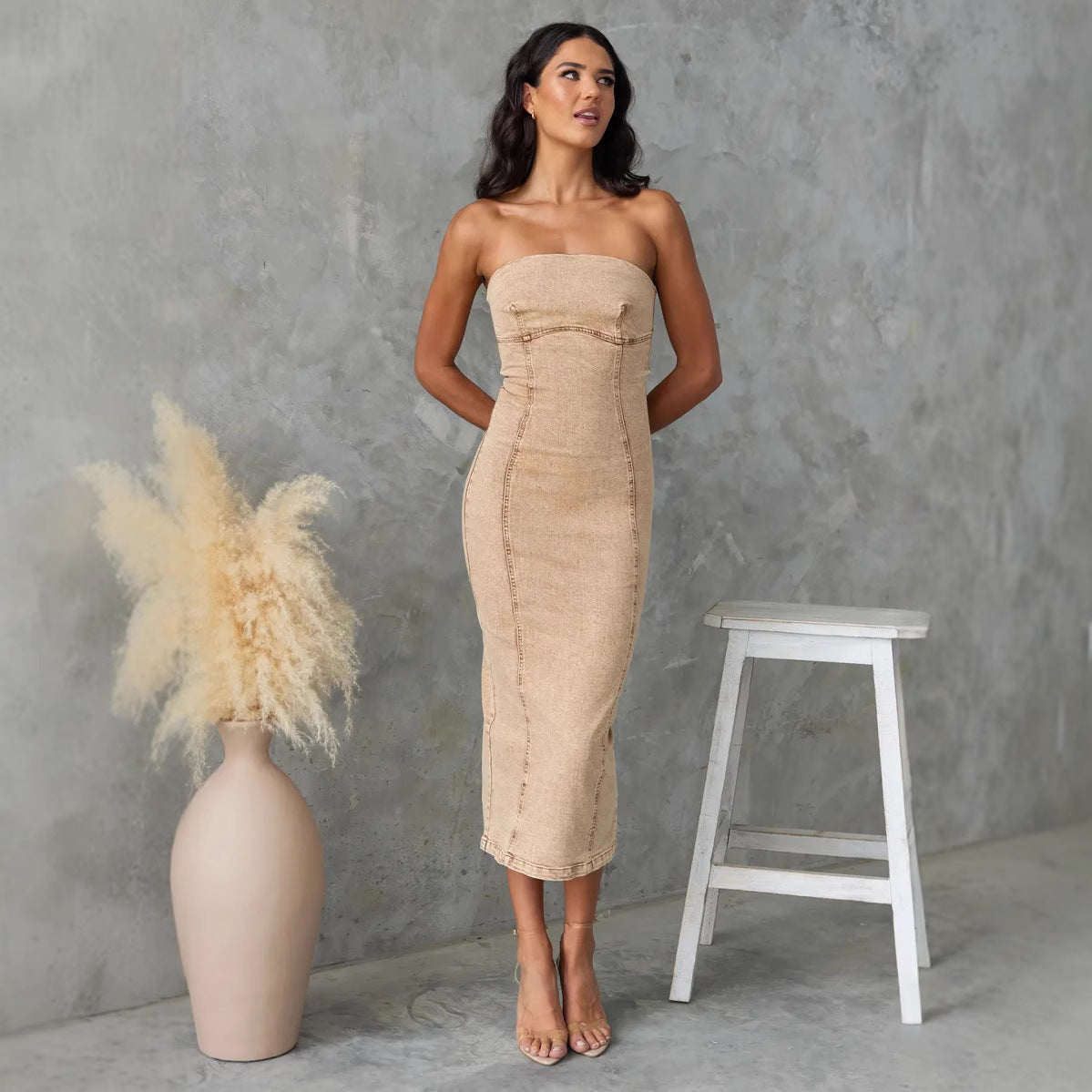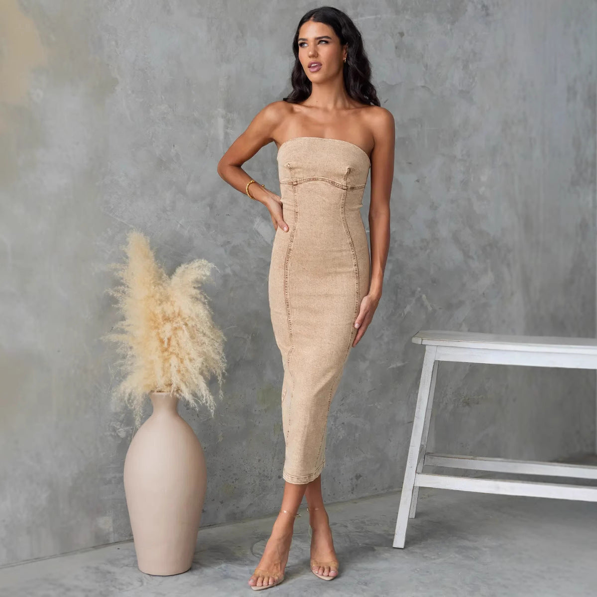 Bandeau Sexy Hot Girl Slim Fit Patchwork Denim Dress